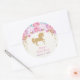 Pegatina Redonda Pegatinas unicornios de ducha para bebés, rosa y d