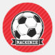 Pegatina Redonda Pelota de fútbol en franjas diagonales rojas