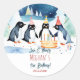 Pegatina Redonda Penguin ártico cumpleaños de invierno gracias favo