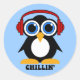 Pingüino lindo y fresco tuxedo chillin con audífonos rojos escuchando camisetas musicales y regalos para los amantes del pingüino. Ropa de pingüino única, original y divertida y regalos para los amantes de la música y para los que les gusta relajarse.