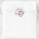 Pingüino personalizado y conejito con un árbol de Navidad y regalos.