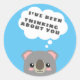 Ilustracion de un lindo oso de Koala con burbujas de pensamiento y texto que dice: "He estado pensando en ti".