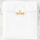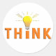Un diseño simple que dice "Piensa" con una bombilla de luz salpicando la letra "I" en amarillo y naranja. Hay líneas onduladas alrededor de la bombilla que podrían representar el pelo descuidado de Albert Einstein.