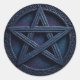 Este pegatina pentáculo presenta un diseño de inspiración céltica en un gris azul con espectros de pintura al aceite púrpura.