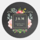 Pegatina Redonda Peonías acuarelas rosas y pizarrón para Boda