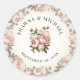Pegatina Redonda Peony Elegant Pink Floral Watercolor Boda