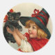 Pegatina Redonda Pequeña Bruja de Halloween de época con gato negro