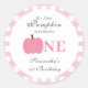 Pegatina Redonda Pequeña Calabaza Cae Pastel Rosa Primer Cumpleaños