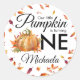 Pegatina Redonda Pequeña Calabaza que se vuelve un cumpleaños otoño