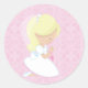 Pegatina Redonda Pequeña Chica rubia, rosa, primera comunión