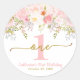 Pegatina Redonda Pequeña Miss OneMaravillosa Rosa Primer cumpleaños