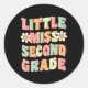 Pegatina Redonda Pequeña Miss Segundo Grado Cute Groovy Primer Día