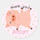 Pegatina Redonda Pequeño Cerdo Con Estrellas Gracias Rosa