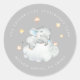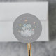 Estos pequeños elefantes jóvenes pegatinas de vuelta circular gris son perfectos para un simple sobre de invitación a la ducha para bebés. El diseño moderno cuenta con un bonito zoológico de color safari en una suave nube con estrellas amarillas brillantes.