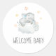 Pegatina Redonda Pequeño elefante durmiente Bienvenido a Baby Showe