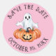 Pegatina Redonda Pequeño Fantasma Y Calabazas Salvan La Fecha
