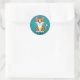 Pegatina Redonda Pequeño gatito lindo sentado con un fondo azul