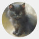 Pegatina Redonda Pequeño Gatito Negro Sombra
