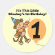 Pequeño Mono Camisas de cumpleaños, pantalones de vestir, tarjetas, bolsas de té, botones, y más con un mono lindo en una fiesta que lleva una gran vela y un texto que dice "¡Es el primer cumpleaños de este pequeño mono!".