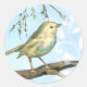 Pegatina Redonda Pequeño pájaro amarillo encaramado en una rama mir