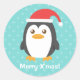 Pegatina Redonda Pequeño pingüino lindo con el gorra de Santa para