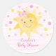 Pegatina Redonda Pequeño rayo de Baby Shower amarillo rosa sol