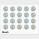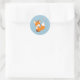 Pegatina Redonda Pequeño zorro lindo viendo mariposa en azul
