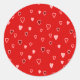 Pequeños corazones rojos y rosas sobre un fondo rojo brillante.