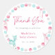 Este pequeño Navidad de la ducha de bebé gracias pegatina presenta un diseño festivo y delicado con una paleta de colores pastel de rosa, azul y blanco. Los caprichosos arcos de color rosa y un borde de bayas pastel que se asemeja a los adornos navideños enmarcan al pegatina. Dos adorables bebés ciervos adornan el fondo, añadiendo un toque dulce y estacional. El diseño combina la alegría de los Navidades con un ambiente suave y acogedor para una ducha de bebé.