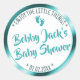 Pegatina Redonda Pequeños pies azul Verde azulado Ombre Baby Shower