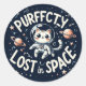Pegatina Redonda Perdida puramente en el espacio de un gato bonito