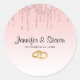 Pegatina Redonda Perforaciones modernas de Purpurina rosado Boda