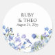 Pegatina Redonda Periwinkle Wildflower Boda nombre novia y novio