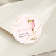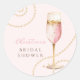 Agrega un toque de elegancia a tu baby shower de Perlas y Prosecco con esta elegante pegatina redonda. Con una copa de champán dorada y rosa adornada con delicadas perlas doradas, este diseño captura la esencia de una celebración chic de Brunch y Burbujas. El suave fondo de acuarela rosado y los sutiles acentos dorados crean un aspecto sofisticado y atemporal, perfecto para sellar sobres, decorar favores o agregar un detalle encantador a tu evento.