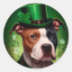 Pegatina Redonda Perro americano Staffordshire en el Día de San Pat