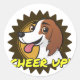 ¡Un perro blanco y marrón en el fondo de un estallido que le dice a la gente que se anime! Este es un Setter Inglés pero el diseño se adapta a cualquier amante de los perros pues lleva un mensaje positivo no relacionado con la raza de los perros!