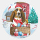 Pegatina Redonda Perro atormentado en la nieve Navidad Casa de perr