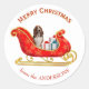 Pegatina Redonda Perro Basset Hound en trineo de Navidad