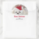 Pegatina Redonda Perro blanco lindo en un Gorra de Navidades rojos