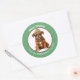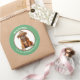 Una imagen de un adorable perro cachorro de Boxer con su gorra de invierno y su bufanda está en el centro de este lindo pegatina de vacaciones. La imagen está enmarcada en un borde verde circular que contiene el texto personalizado en blanco. Perfecto para tarjetas de Navidad, correspondencia y paquetes de regalo.