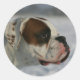 Pegatina Redonda Perro Boxer en la Nieve