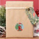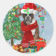 Pegatina Redonda Perro Boxer en Nieve con regalos de Navidades