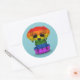 Pegatina Redonda Perro cachorro del orgullo gay arcoiris, azul