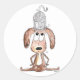 Pegatina Redonda Perro caprichoso con gato en la cabeza