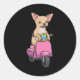 Pegatina Redonda Perro Chihuahua en una motocicleta