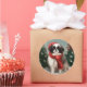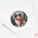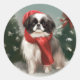 Pegatina Redonda Perro chino chino en Navidades de nieve