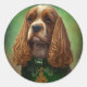 Pegatina Redonda Perro Cocker Spaniel con vestido de San Patricio