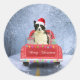 Pegatina Redonda Perro collie fronterizo en nieve sentado en Navida