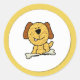 Un perro cachorro personalizado dulce con un hueso sobre un fondo blanco con un borde amarillo
