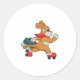 Pegatina Redonda Perro con patines de rodillos
